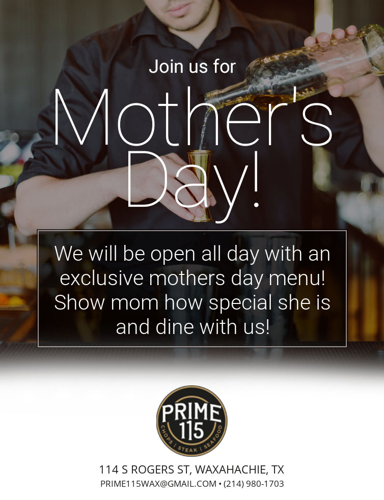 The Perfect meal. The Perfect ambiance. The Perfect Town. That's the vision that led us, and ultimately you, to Prime 115. Comfortably nestled in the historic town of Waxahachie, TX, we bring big-city fine dining close to home with an experience that is both accessible and pleasing to the most elite connoisseur. As the premier steakhouse and fine dining restaurant in the area, we seek to provide an escape from the mundane with top-shelf food and wine, and a slower pace that lets you forget about everything but the food on your plate, the vintage in your glass, and the company you've chosen to share it with.